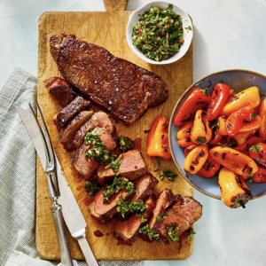 Roasted New York Strip Steak with Chimichurri Sauce